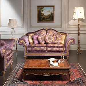 Мебель следует подбирать дорогостоящую, произведенную по отдельному проекту из ценных пород древесины: вишня, орех или карельская береза. Она может быть с вкраплениями перламутра, бронзы или золота, редких пород деревьев, с изящными коваными элементами. В качестве мягкой мебели следует выбрать диваны и кресла с подлокотниками полукруглых объемных форм, оббитые кожей или дорогостоящим текстилем. Это позволит придать помпезности, дороговизны, шика и в то же время утонченности мпомещению.