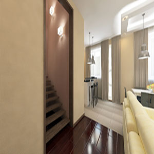 Дизайн интерьера таунхауса оформлен в позитивном стиле модерн.